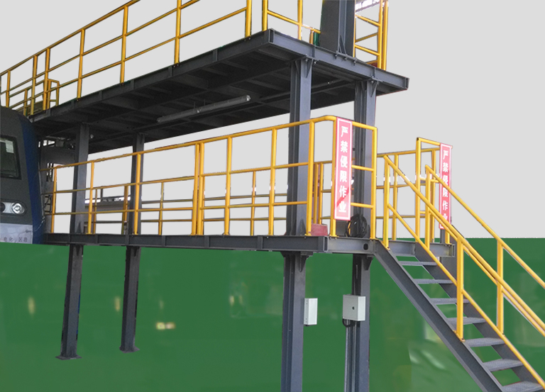 三層整備作業平臺適用于各型機車檢修整備作業,方便檢修整備作業人員對機車車上部件的檢查、檢測、清潔保養,保證檢修整備人員上下機車的安全。